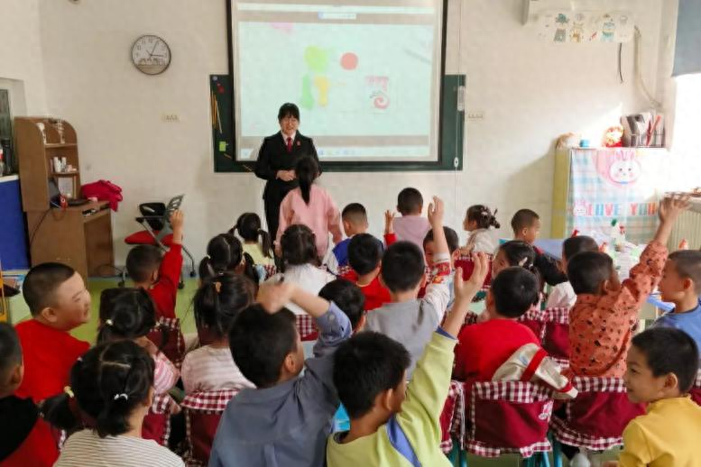 课堂上,法官王乃弘通过图文、讲故事、做游戏、互动问答等多种形式,让孩子们在轻松欢快的环境中对法律、安全有了新的认识,小小的教室变成了生动活泼的普法小课堂。课堂上,幼儿园小朋友积极踊跃回答问题,现场气氛热烈,充满童真趣味,也让“尊法、学法、守法”融入学前教育的日常。