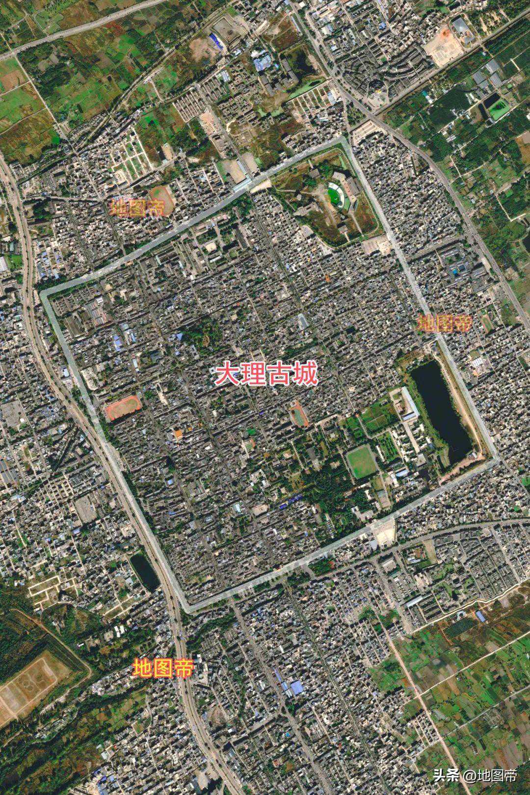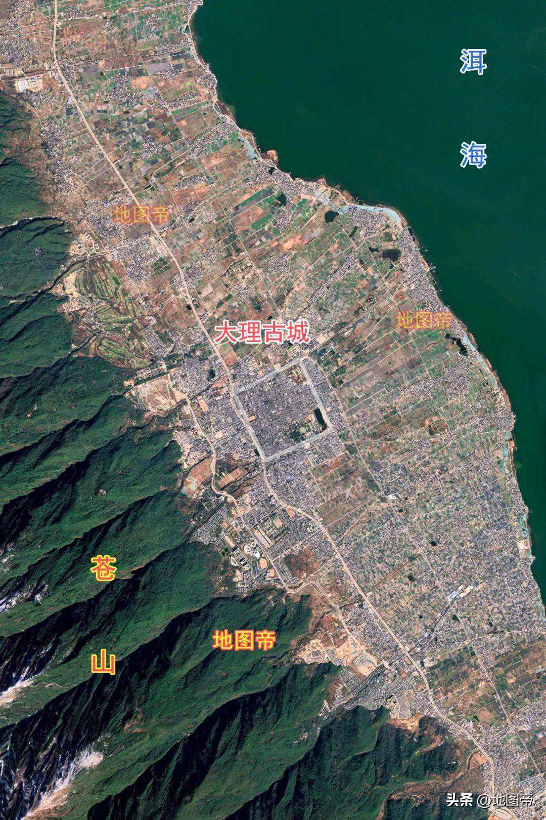 大理地处洱海沿岸,海拔约2000米,市中心纬度是北纬25°40′51″。大理古城西倚苍山,东临洱海,面积约2.1平方千米。