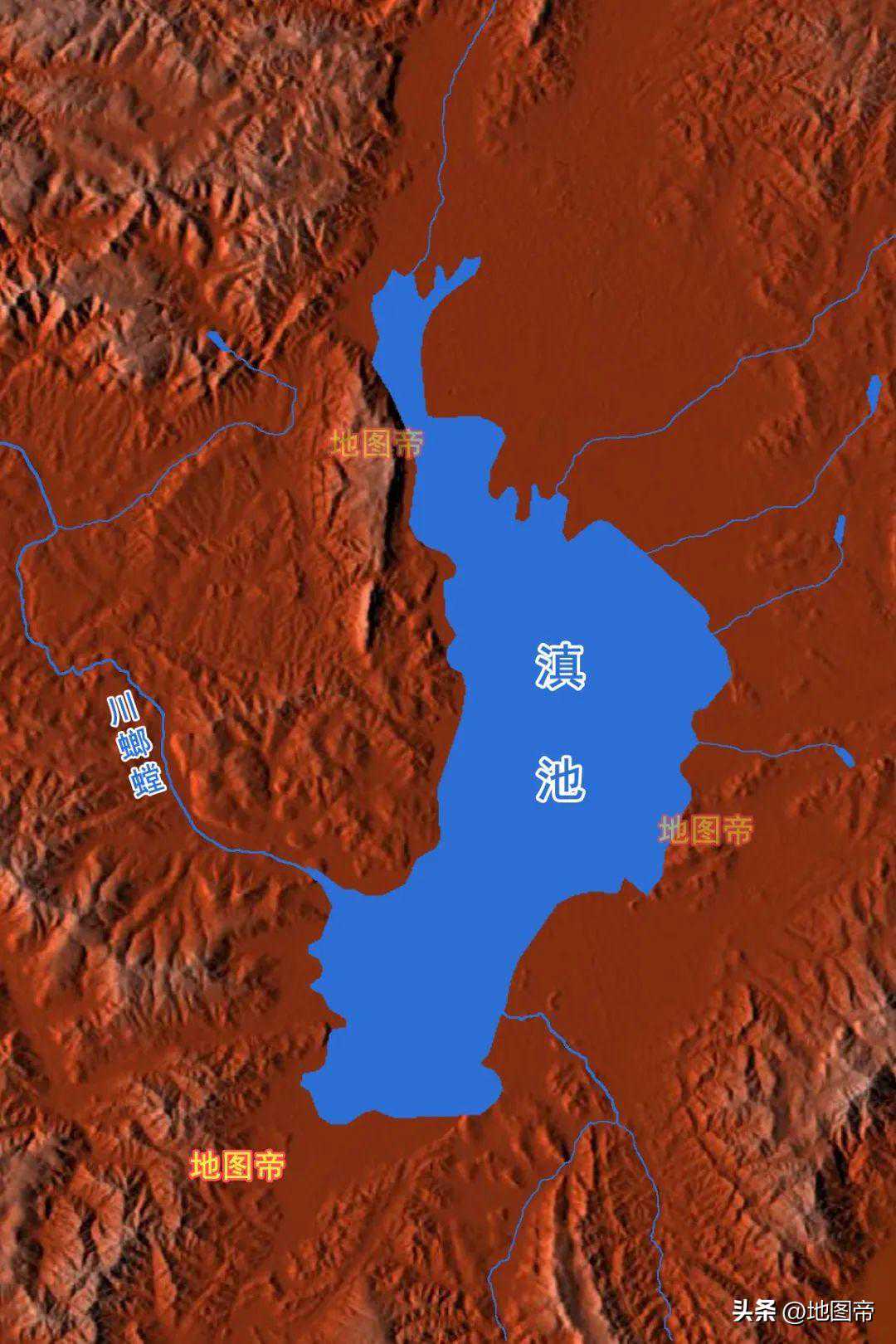 滇池主要入湖河流为盘龙江,主要出湖河流为螳螂川-普渡河-金沙江-长江。人心恰似池中水,一道南流一北流。