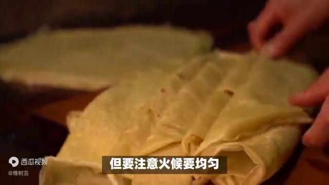 →二是摊煎饼。将磨好的浆液过滤去除残渣,然后再约五十公分平锅上用小火摊成薄煎饼。但要注意火候要均匀,以免煎饼糊掉。