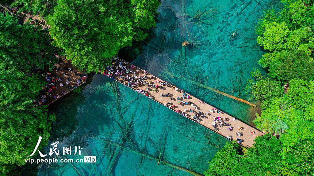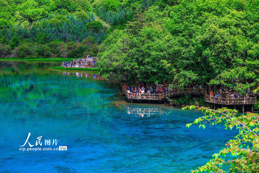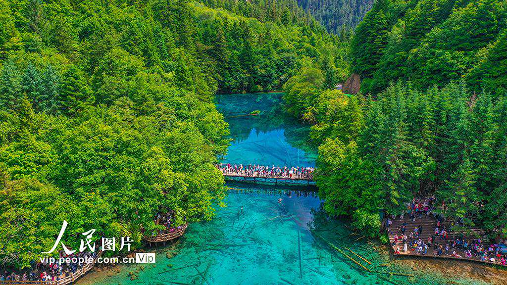 2023年6月18日,四川省阿坝州九寨沟县的九寨沟景区内,随着毕业季及暑期的到来,吸引了大量的游客前来观光、休闲和度假。截至今年6月初,九寨沟景区已接待游客超120万人次。
