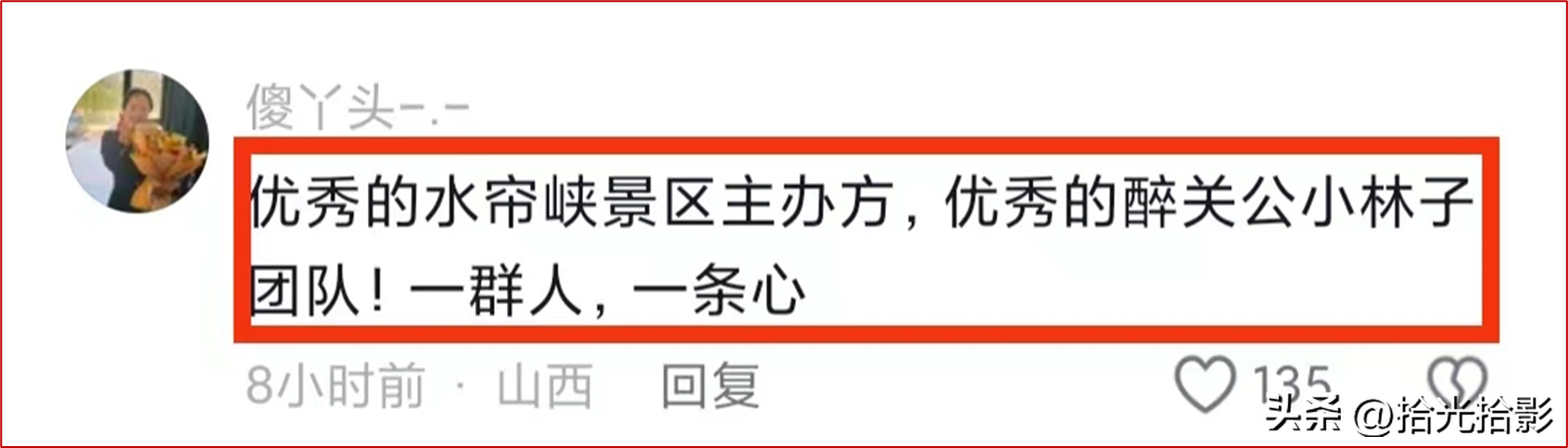 1、优秀的水帘峡景区主办方,优秀的醉关公小林子团队,一群人,一条心;