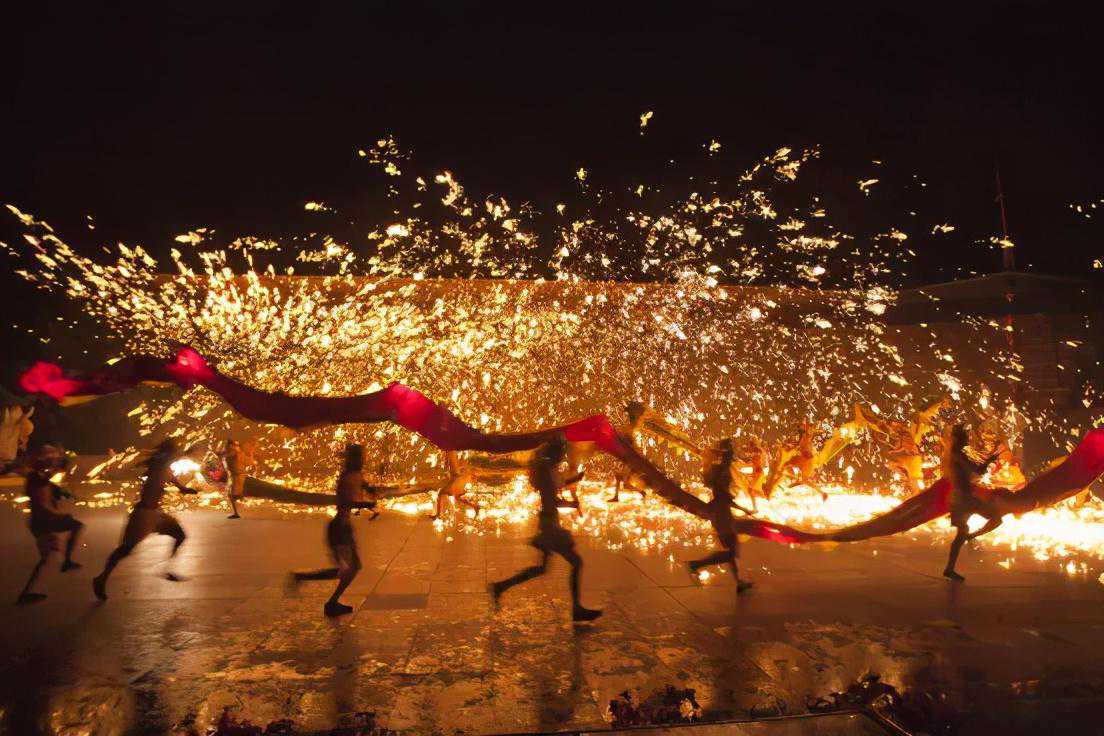 如果你正好赶上五一前四天的夜场,一定要等到篝火晚会!!!火龙钢花!!!还有极具贵州风情的大型演出!