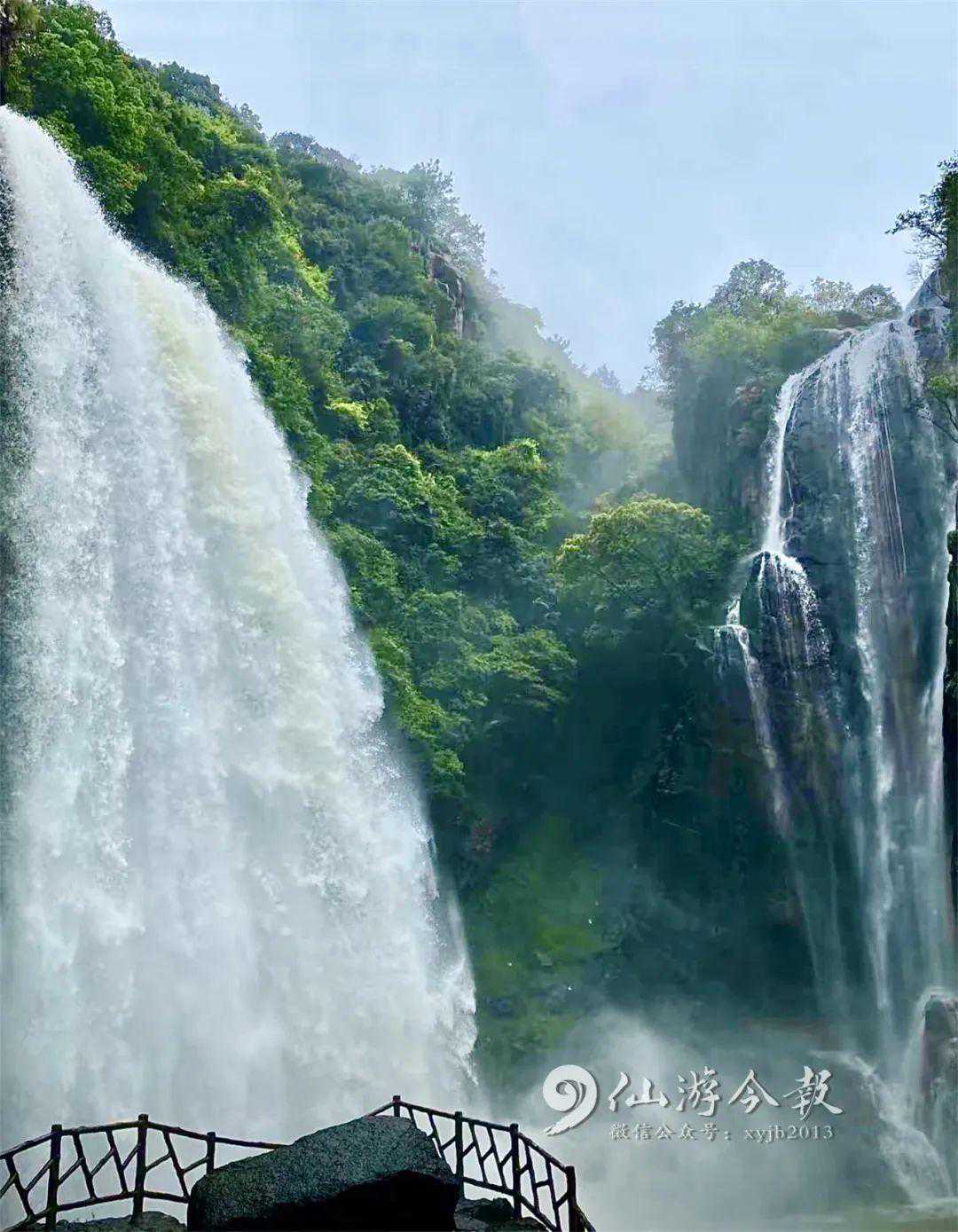 致九鲤湖景区的瀑布