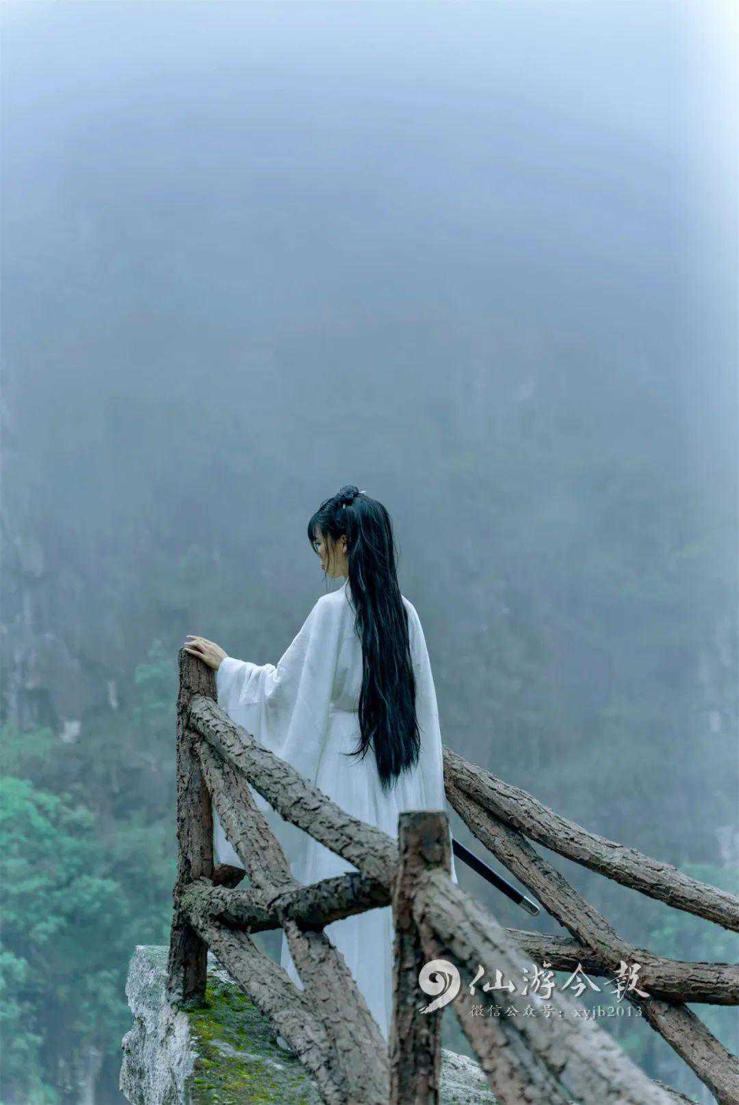 穿着汉服等古装拍照。
