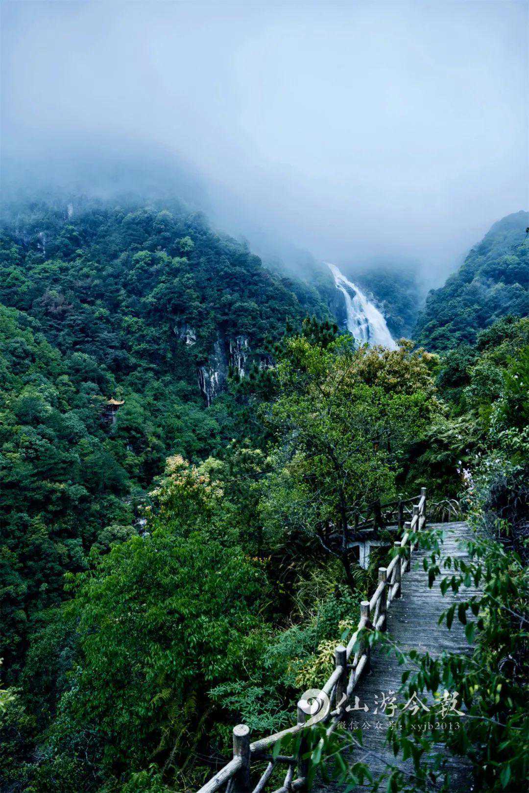 在雨天前往景区观赏瀑布,
