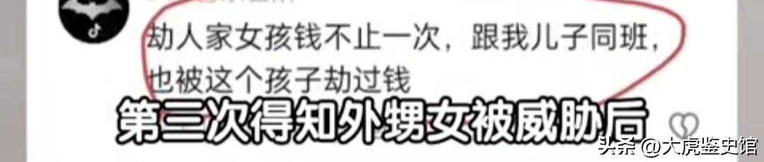 还有其他网友表示这个男孩欺负过不止一个人,小时候劫钱,长大了这不就是抢劫行为吗?